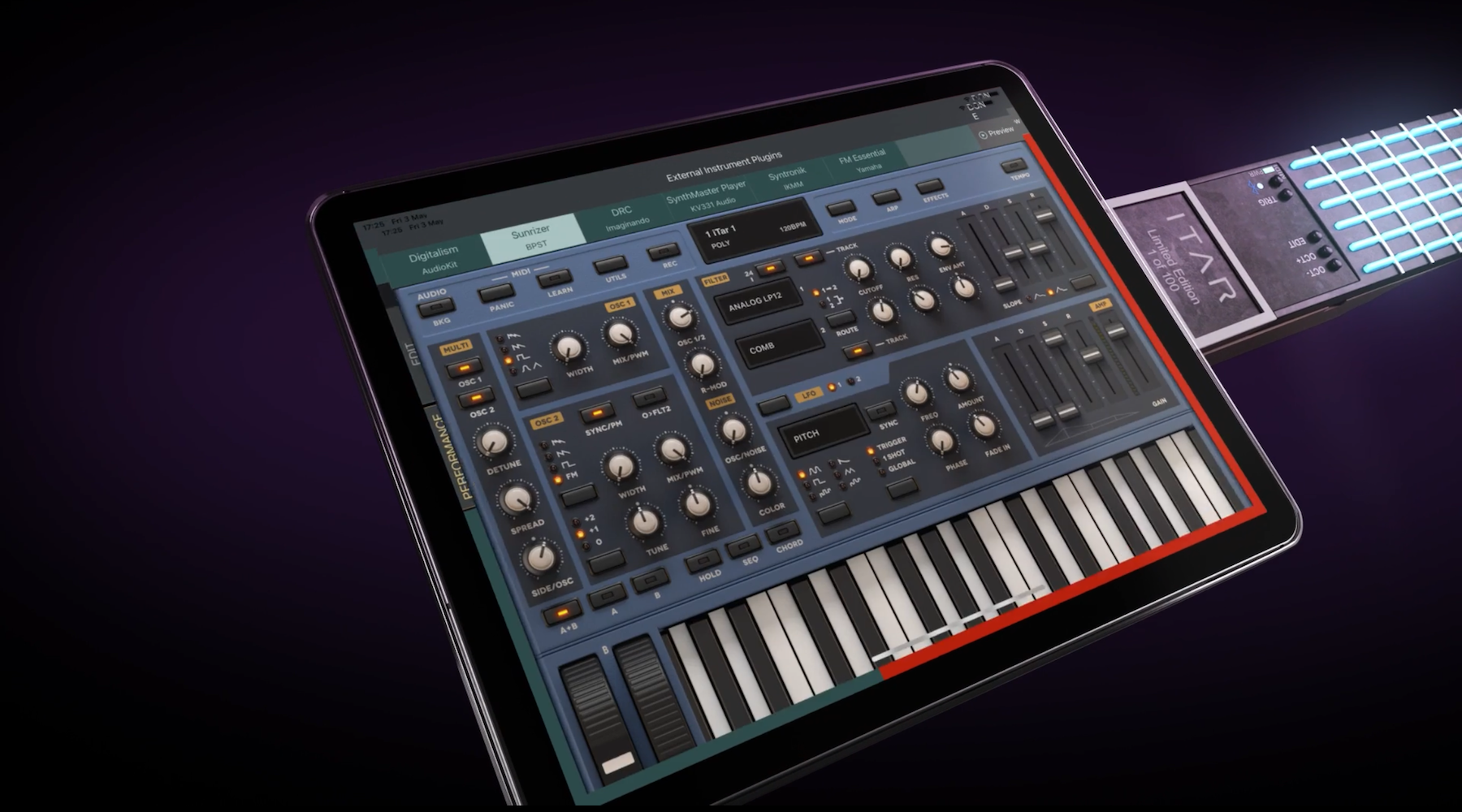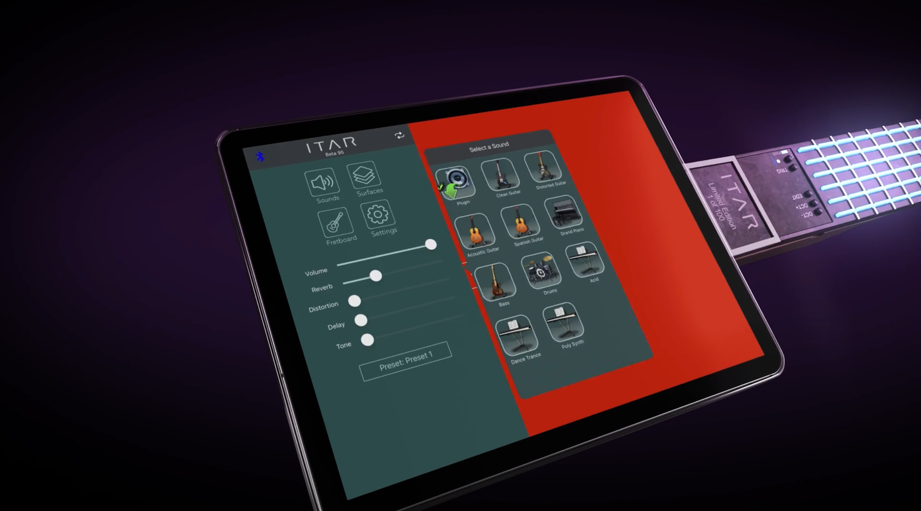 With the iTar’s 120 touch-sensitive programmable keys and seamless access to on-smart-device sound modules via the BT4.0 BLE-MIDI connection between neck and device and MIDI 2.0 compatibility means the iTar’s potential for music creation is unsurpassed.